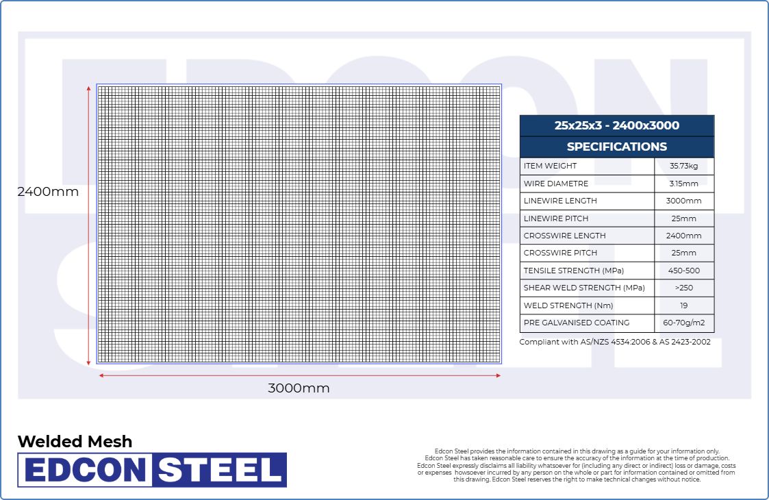 Welded Mesh - 75x50x4- 2400x3000