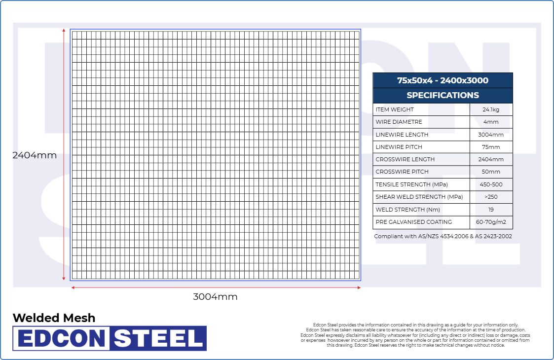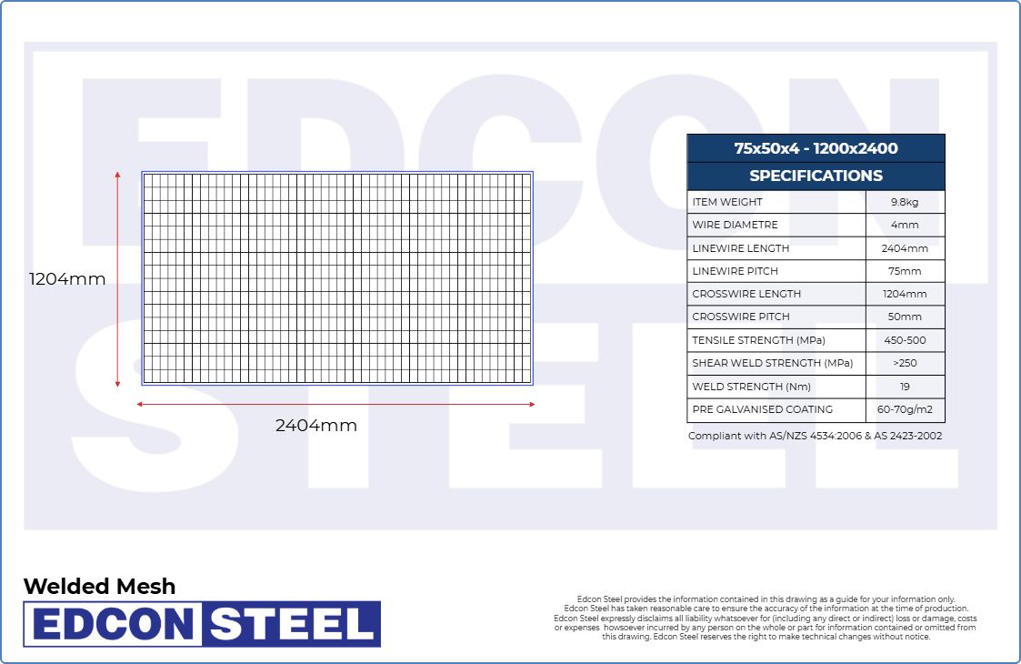 Welded Mesh - 75x50x4- 1200x2400